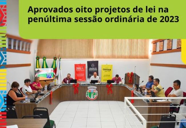 Nesta segunda-feira, 11, a Câmara de Vereadores de Fazenda Vilanova realizou a penúltima sessão ordinária de 2023. Na ocasião foram aprovados por unanimidade oito projetos de lei de origem do Executivo Municipal, são eles:
